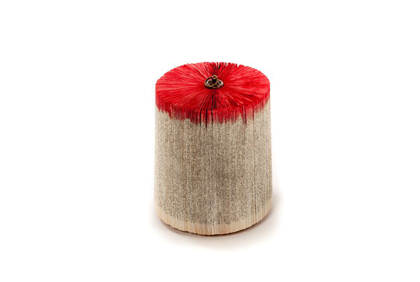 We have added color! A carmine red top to add even more character to our model Trunk. The pigment is all natural, and according to the different types of paper, the color ‘sinks in’.